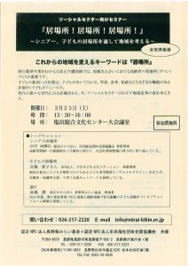 移行最終年度をむかえる改正介護保険では、地域支え合いにおける高齢者の居場所(サロン)づくりが重要です。