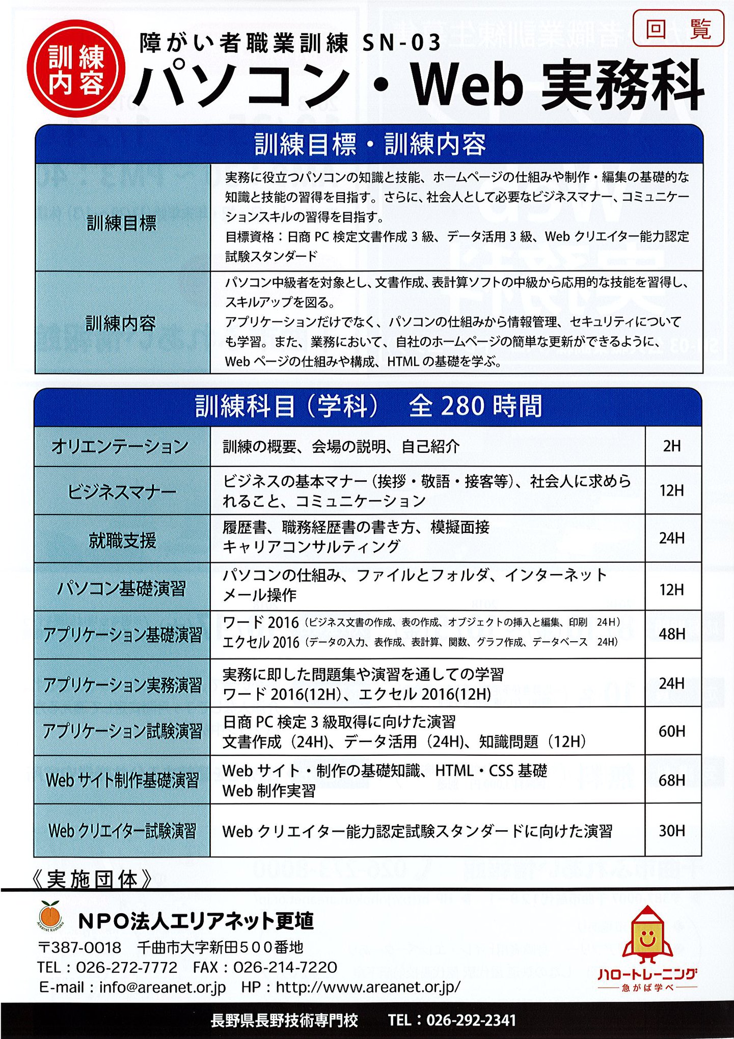 応募資格 障碍者で、コミュニケーションが取れ、介添人なしで3か月間安定して通える方。パソコン中級者対象。