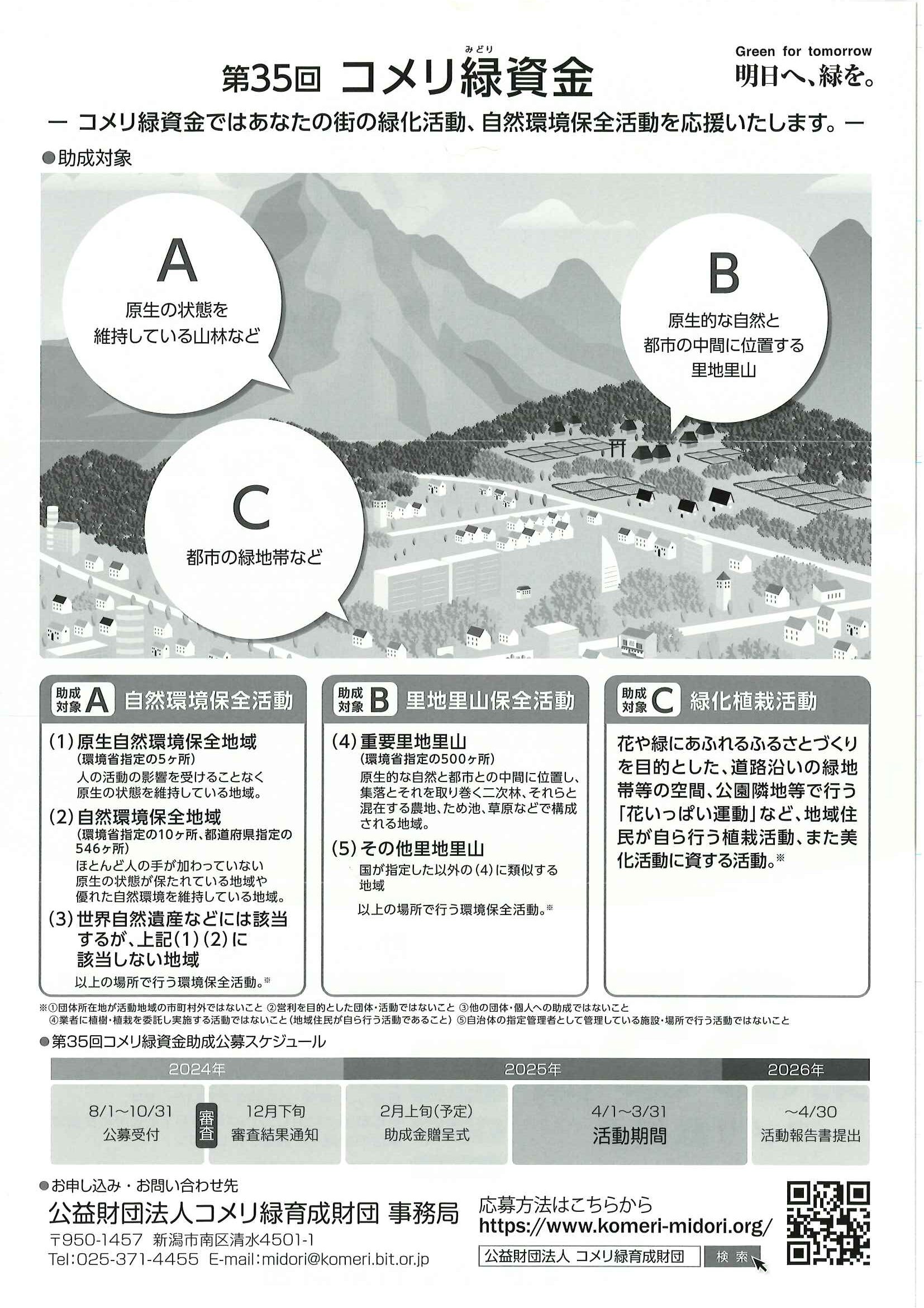 応募要項・申込方法等の詳細は公益財団法人コメリ緑育成財団ホームページを ご覧ください。