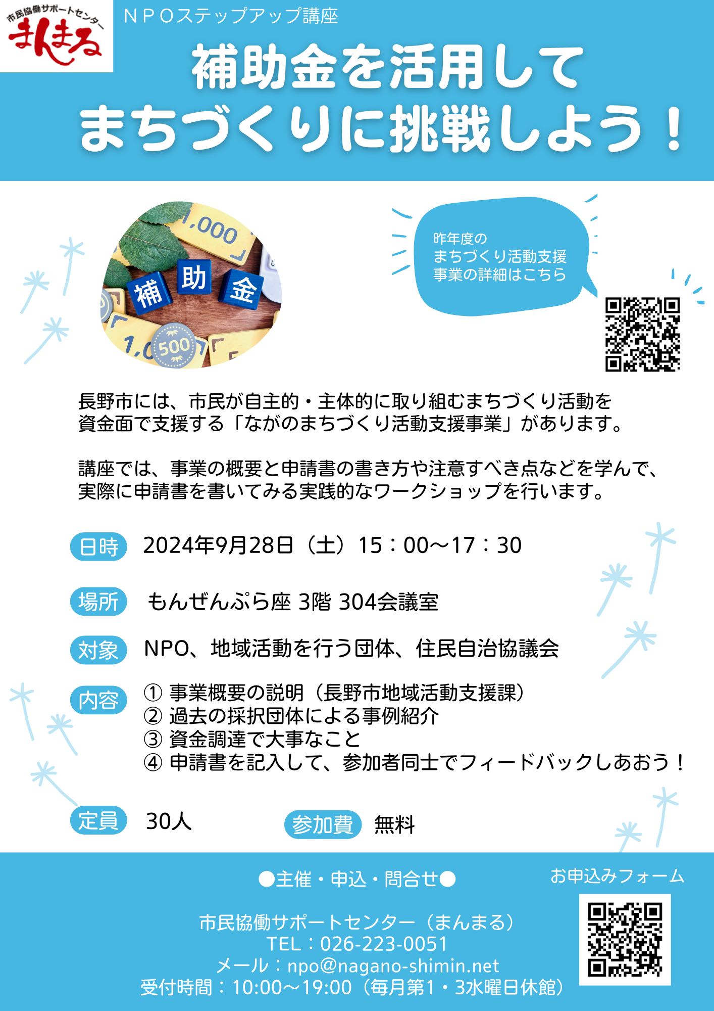 申請を考えている団体さん、まちづくりに取り組んでいる団体さんには是非ともご参加いただきたいイチオシの講座です!!