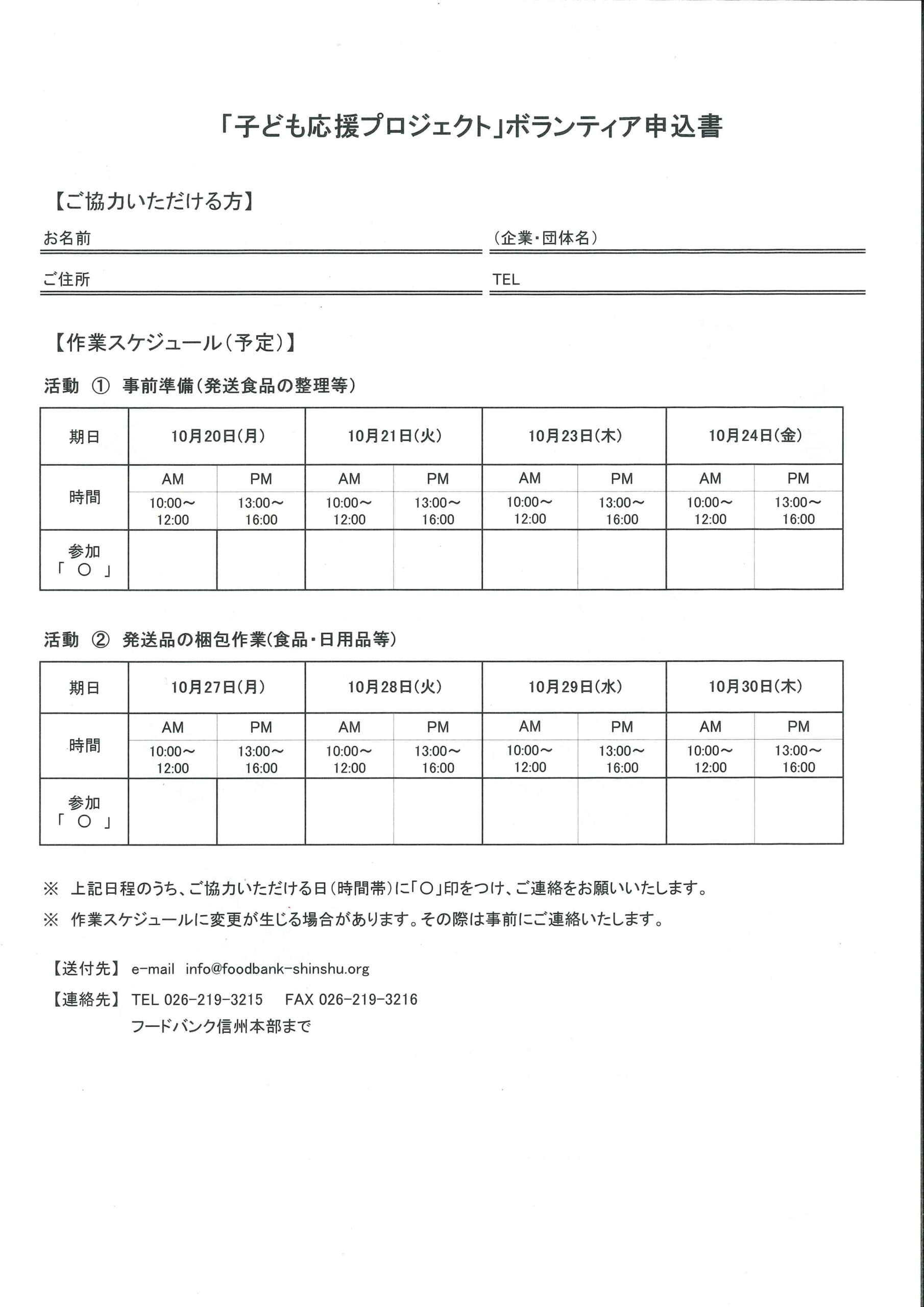 TEL219-3215 メールinfo@foodbank-shinshu.org