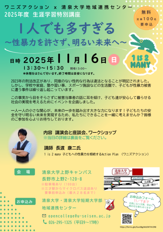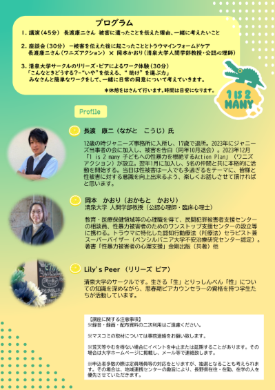 ◆講師:長渡 康二さん (1 is 2 many 子どもへの性暴力を根絶するAction Plan (ワニズアクション))