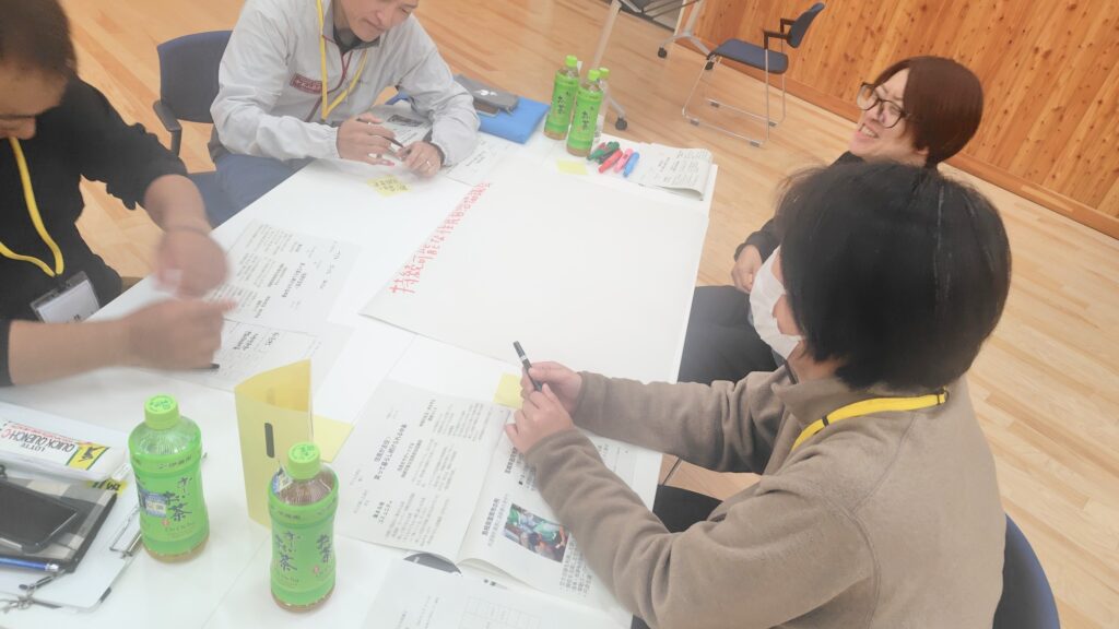 その中で、「気軽に集まって夢を話す場が必要では」「コミュニティづくりとして、外から来た人たちも入りやすい雰囲気の場がないと」といった意見が出ました。また、「時代の変化とともに、改めて私たちにとって住民自治協議会や区の役割とは何か?を考えたい」と話すグループも。