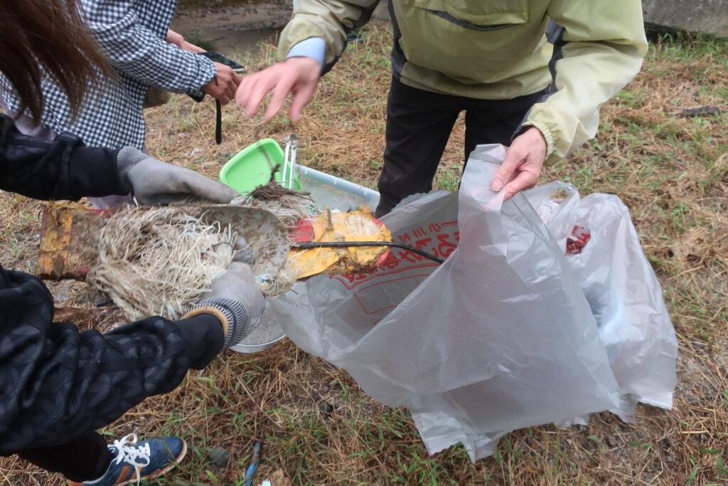 工事資材、苗ポットの表示カード、農業ネット、魚とりの網、ブルーシートの破片…ごみとして川に投げ込まれてしまった物の他にも、風や台風などによって意図せず川に流れ着いてしまったごみも多いように感じました。