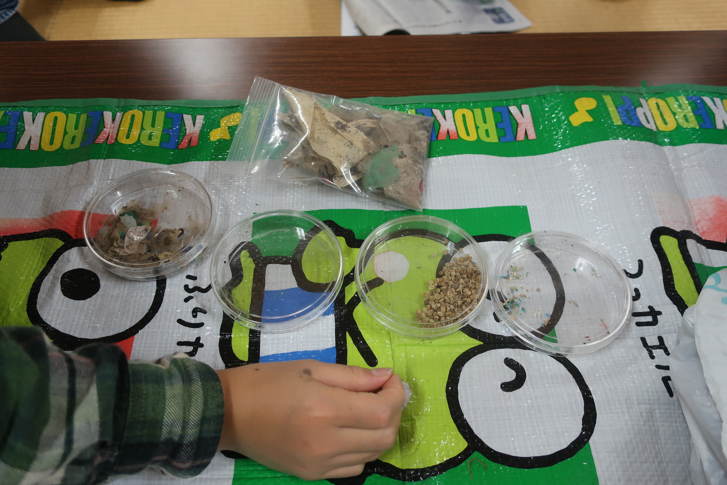 一緒に参加していた小川村の小学生も、細かいごみにとても興味を持って、一生懸命集めていました。