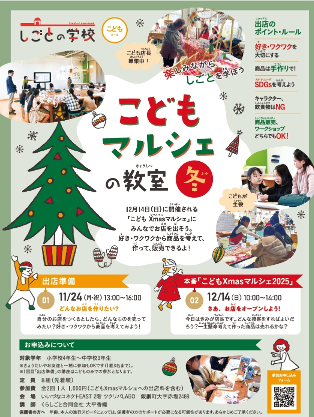 ◆参加費:全2回 1人  1,000円(こどもXmasマルシェ2025への出店料を含む)