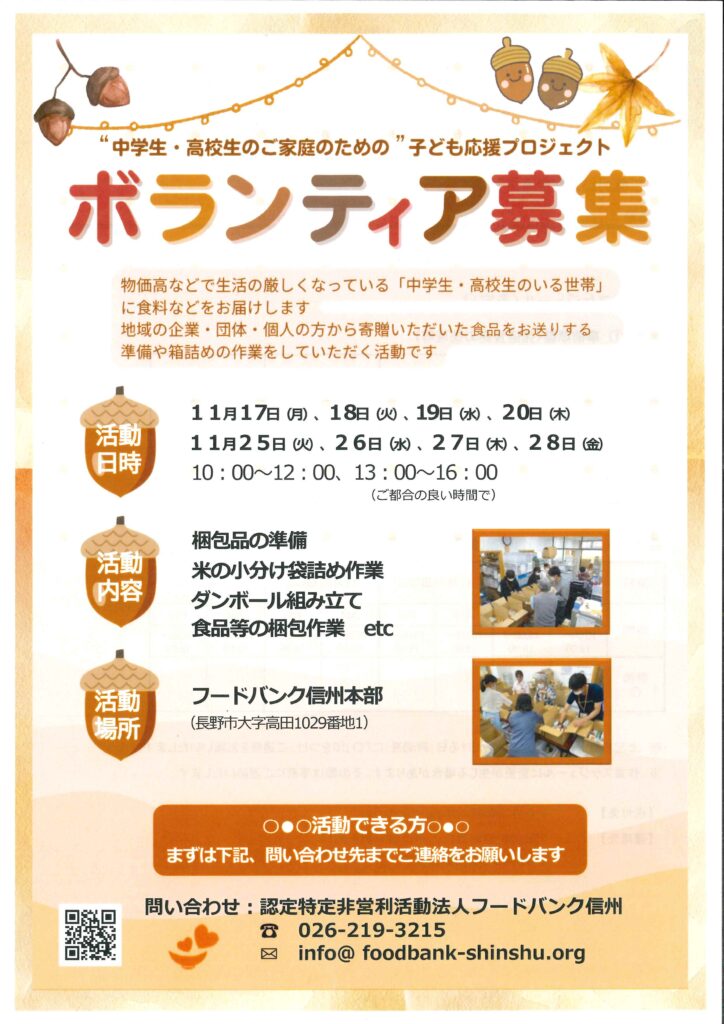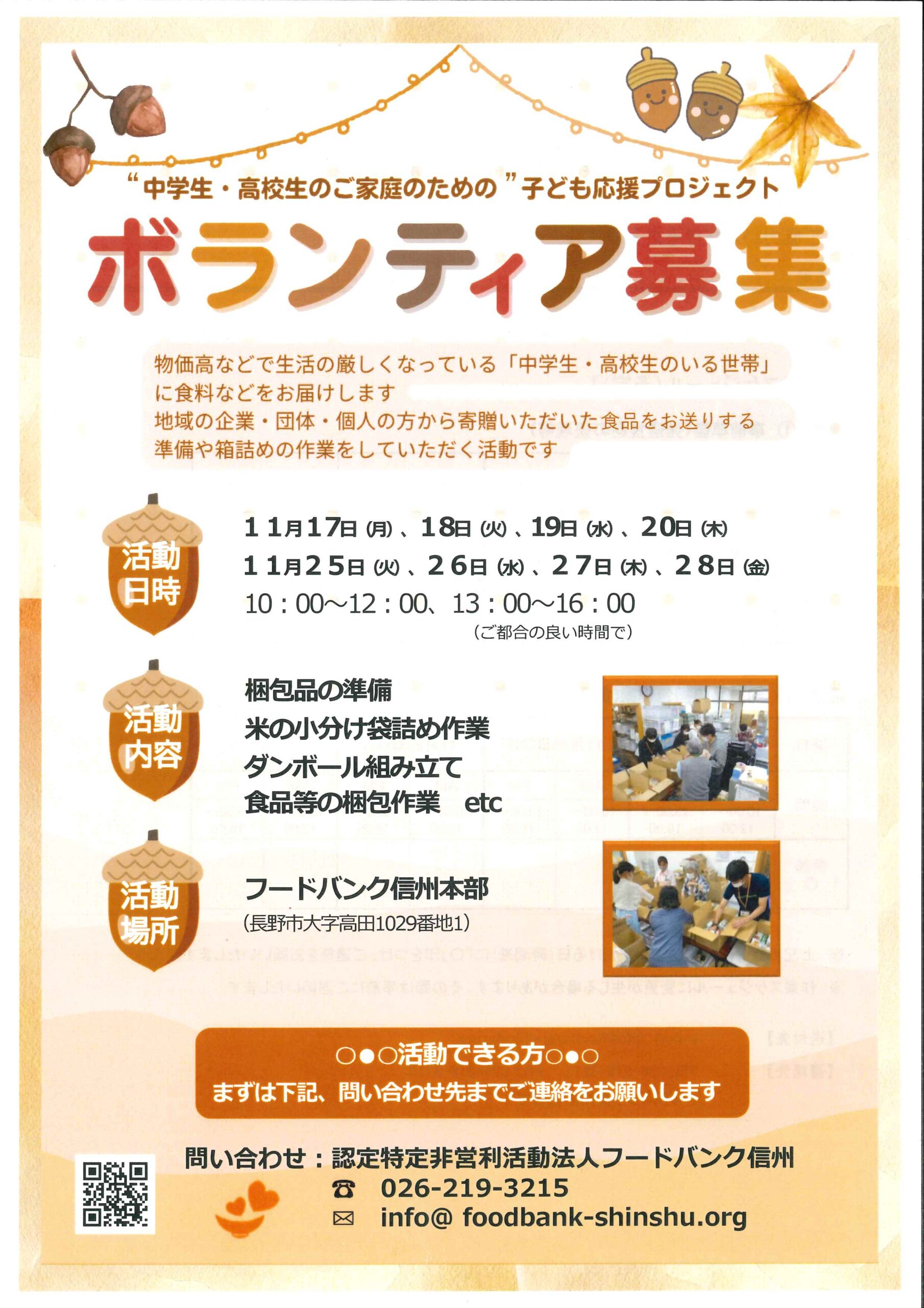 #情報 #NPO #長野市 #市民活動 #ボランティア募集 #フードバンク #子ども応援