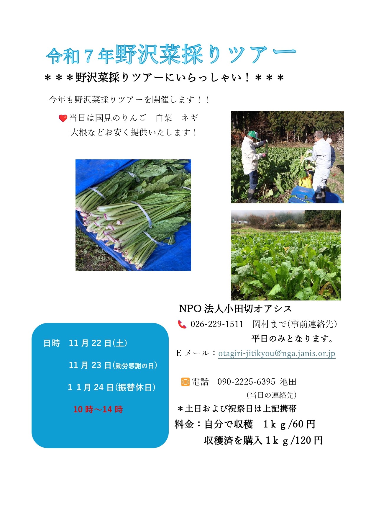 #情報 #NPO #長野市 #市民活動 #小田切 #野沢菜採り