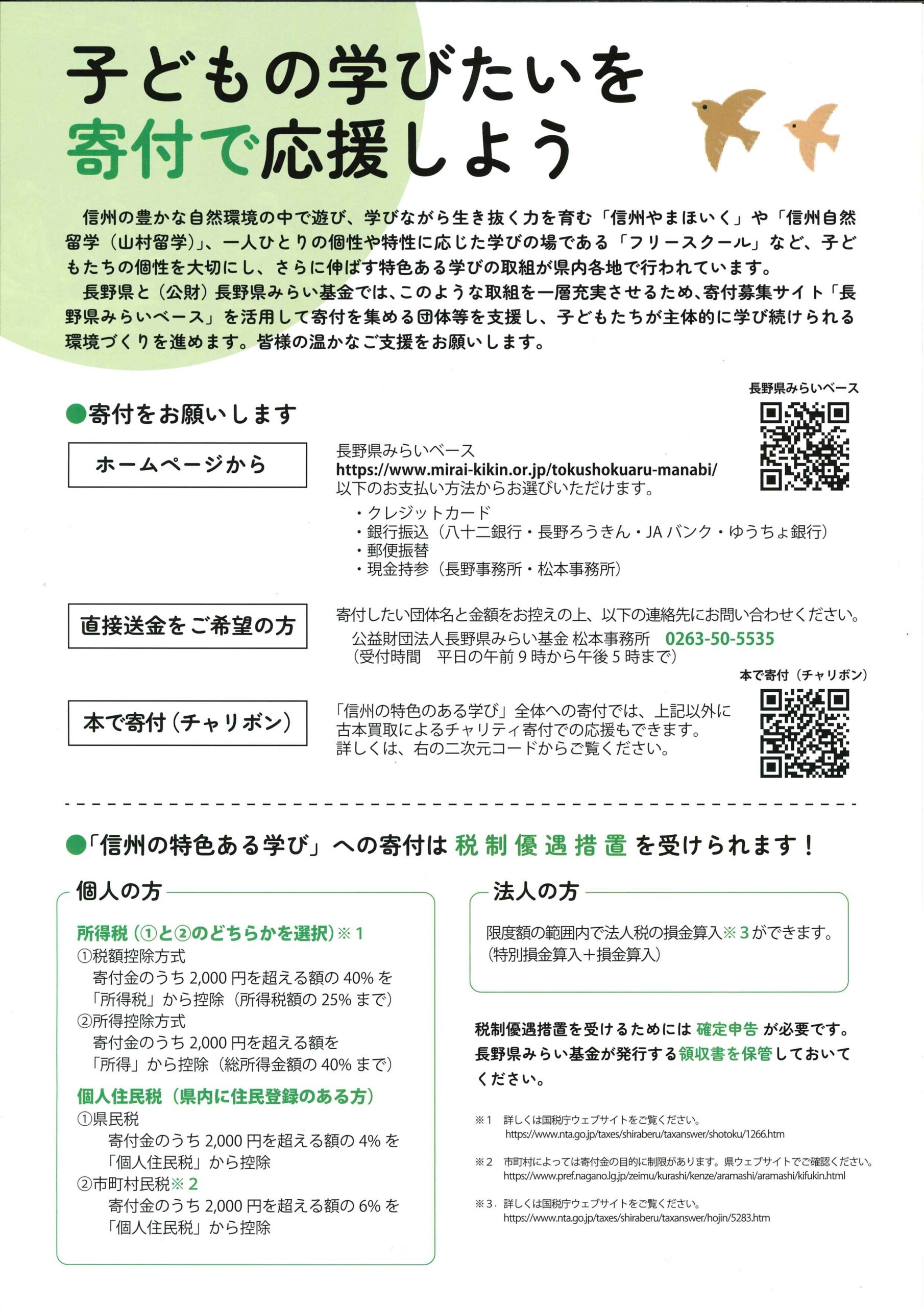 ※信州の特色ある学び」への寄付は税制優遇措置を受けられます!