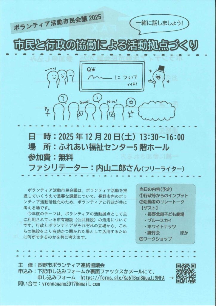 長野市ボランティア連絡協議会 メール:vrennagano2017@gmail.com