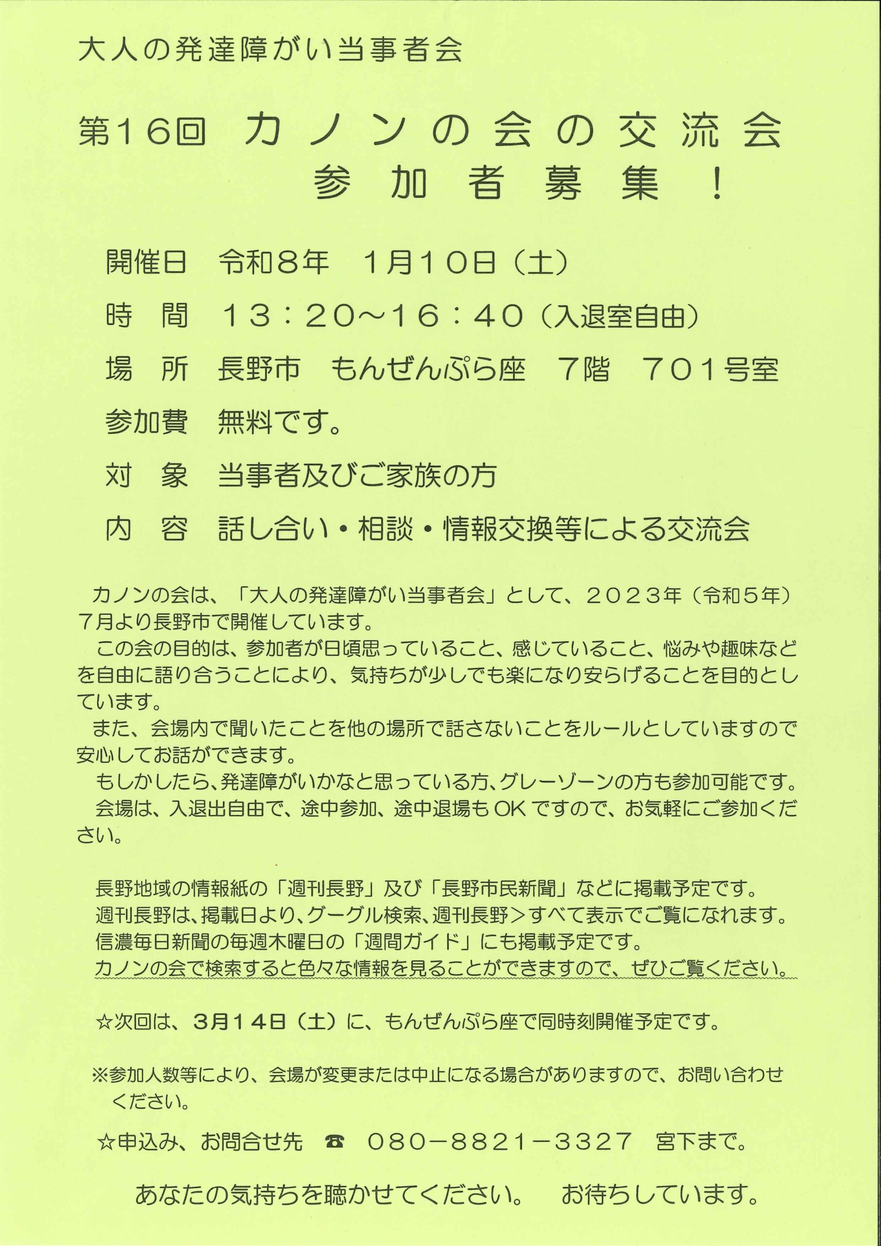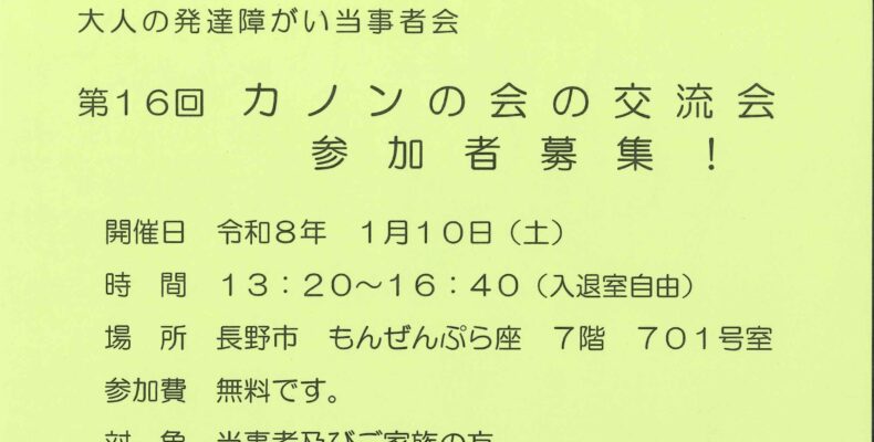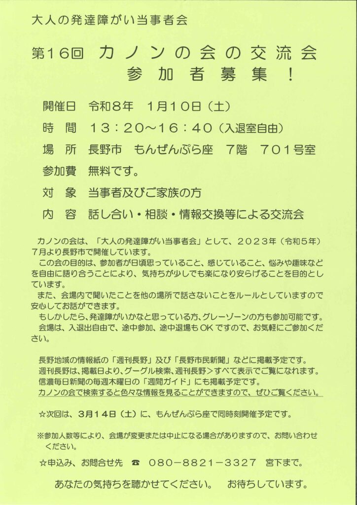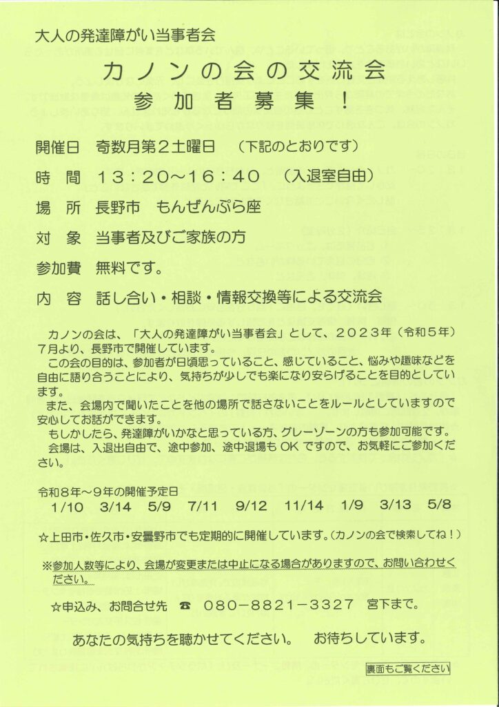 #情報 #NPO #長野市 #市民活動 #カノンの会 #発達障がい当事者会