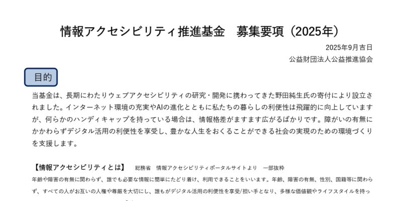公益財団法人公益推進協会 情報アクセシビリティ推進基金担当