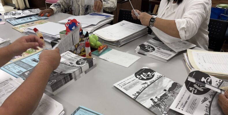 封筒に機関誌を入れ、封をします!準備が整った機関誌は市内・県内・県外各地へ発送します。他の参加者と交流しながら、一緒にボランティアしませんか?