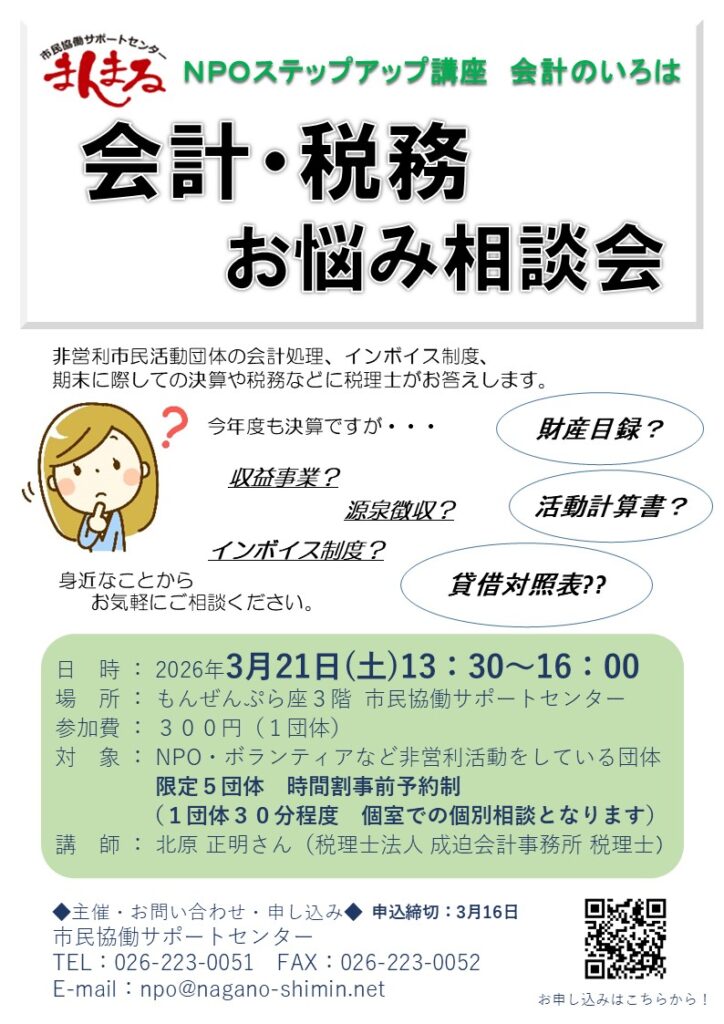 #情報 #NPO #長野市 #市民活動 #市民協働サポートセンター #会計相談会 #決算 #税務
