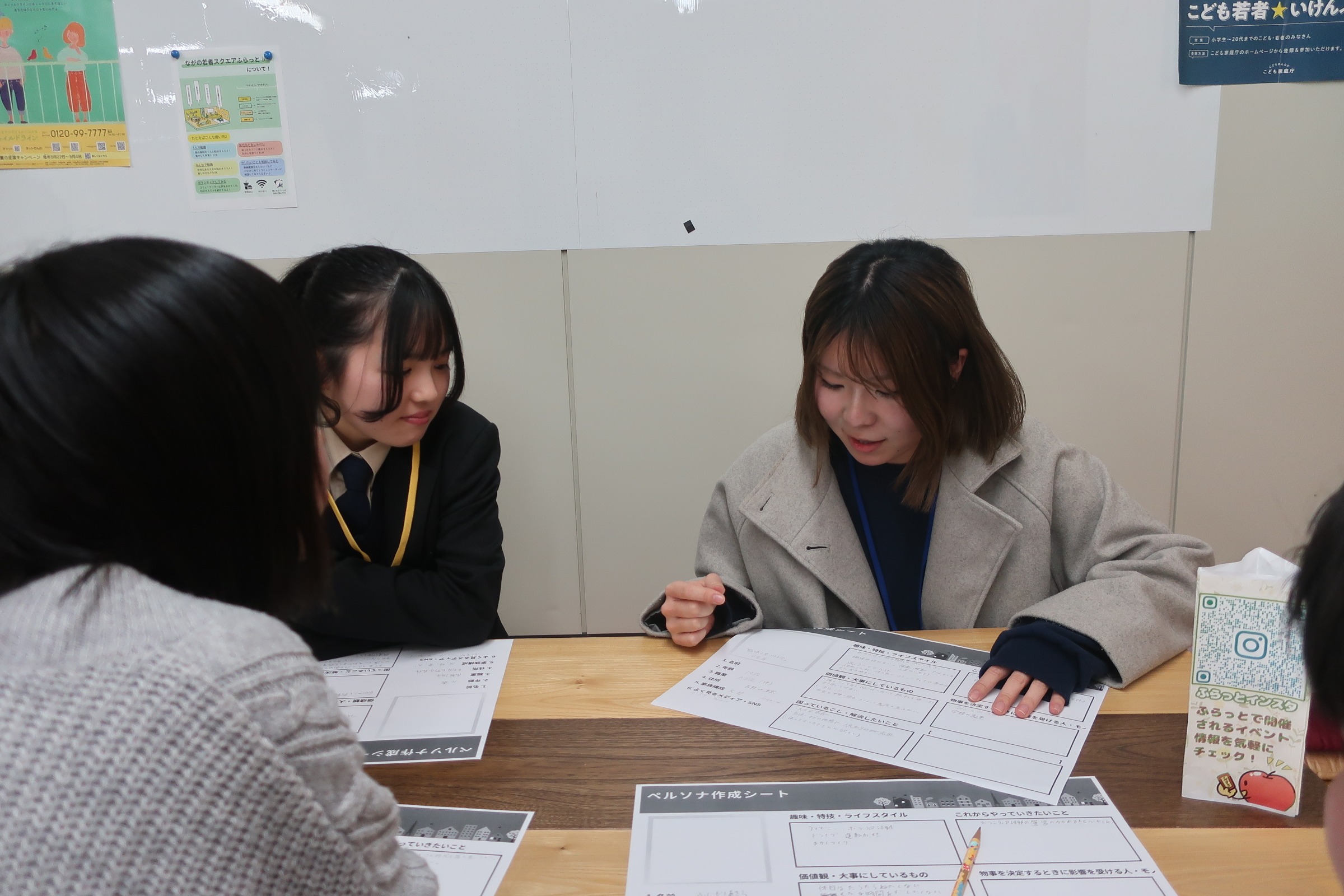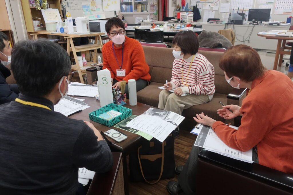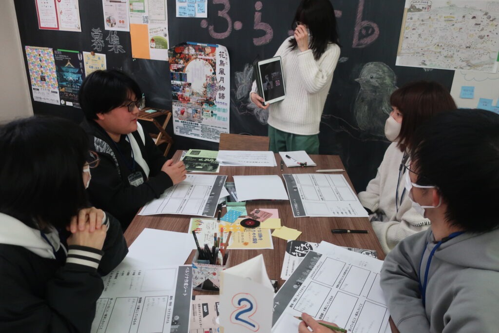 4~5人のグループに分かれ、お互いの作成したペルソナを発表し合いました。子ども食堂の運営をしている方は、身近な大学生をイメージしてペルソナを設定していました。「ワークシートに書き込めなかった部分は、またインタビューしてもっと具体的にしてみようと思う」と話していました。他の人の理由やアイデアを聞いて共有することで、自身のペルソナを見直すヒントを得たり、他の人の視点を知るきっかけにしていました。