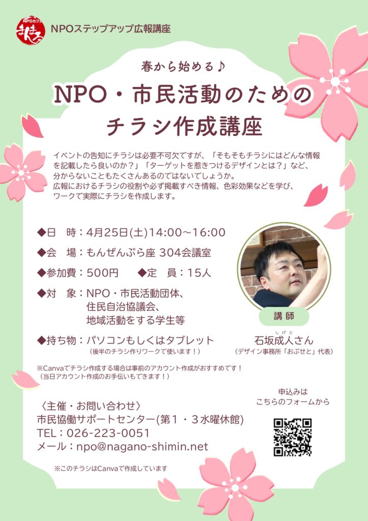 春はNPOや市民活動団体が年間のイベント等を計画する時期です。