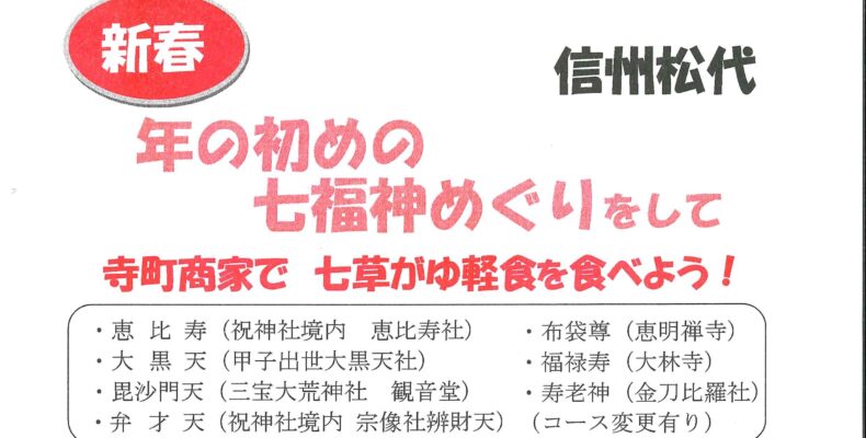 【NPO法人夢空間松代のまちと心を育てる会主催】年の初めの七福神めぐりをして寺町商家で七草がゆ軽食を食べよう!